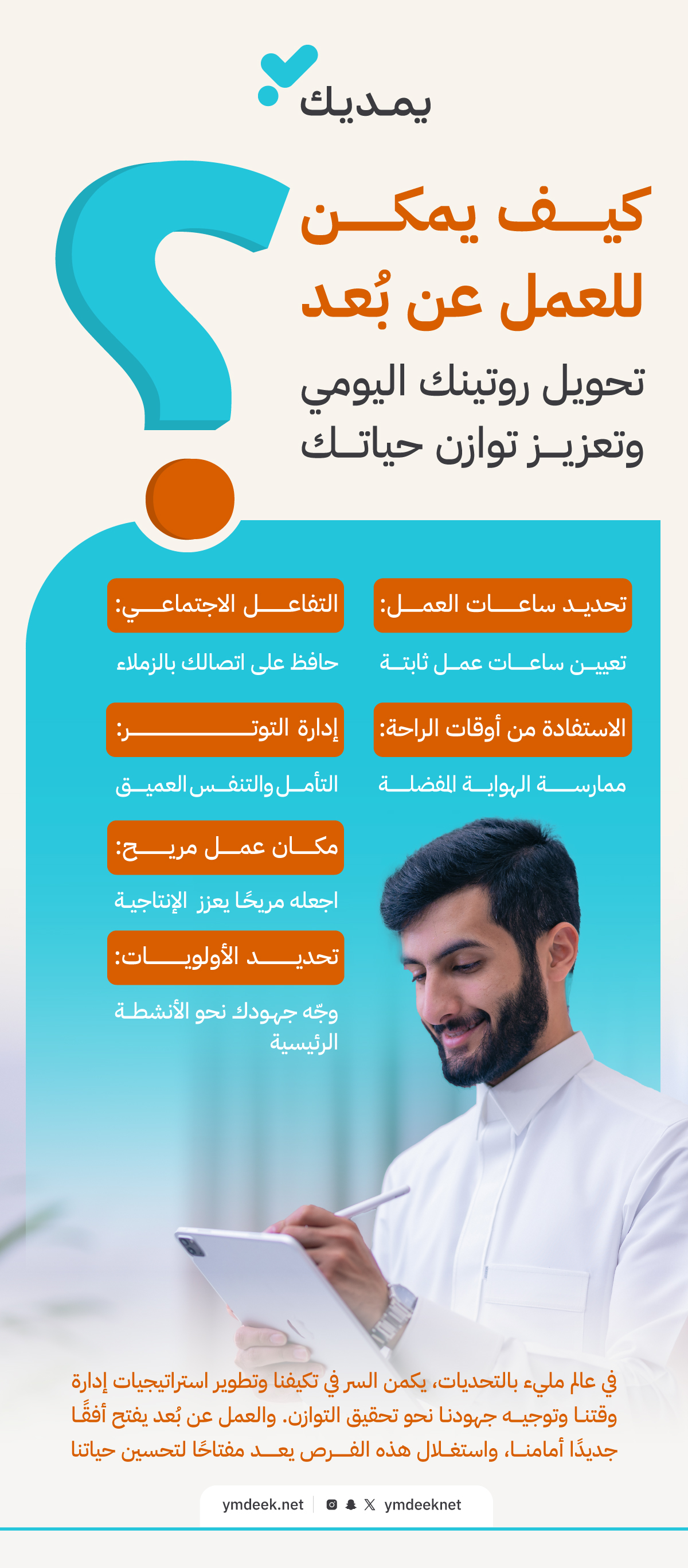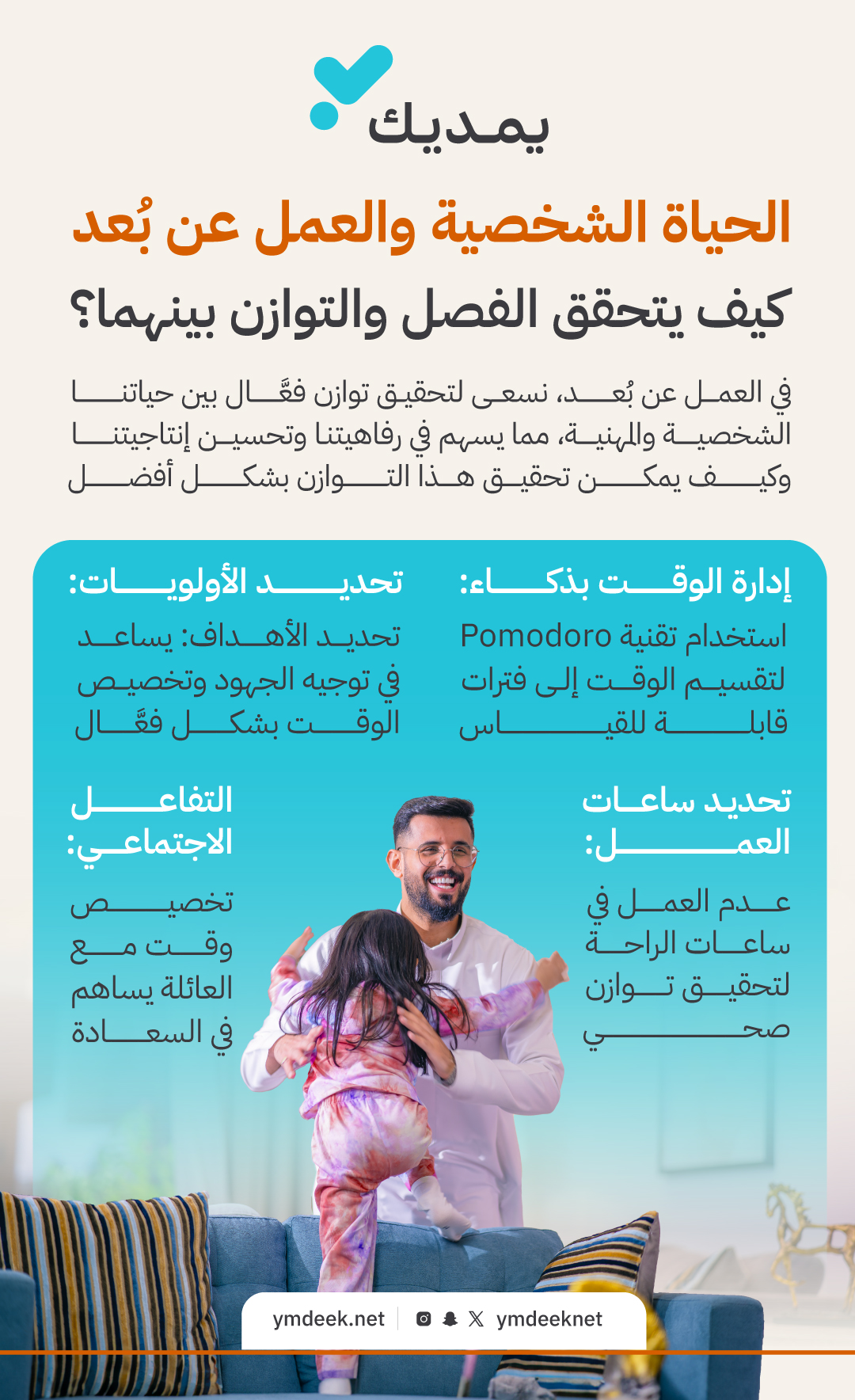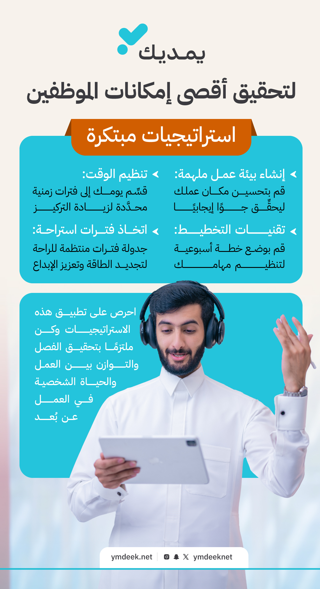 ● التعامل: تحديد حدود زمنية للعمل والاستراحة لتحقيق التوازن.