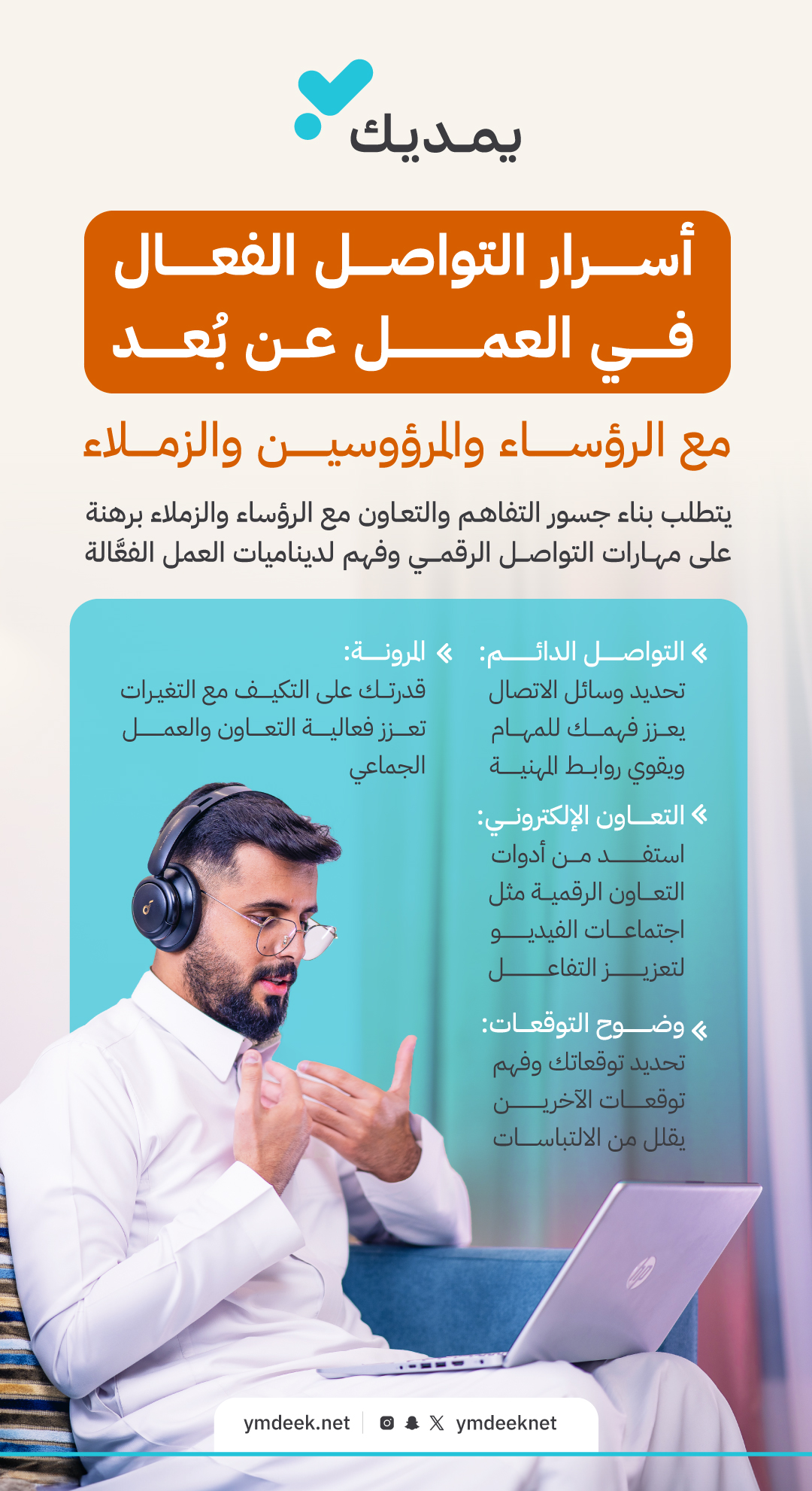 ● اختيار وسائل الاتصال الملائمة للرسالة، سواء كانت بريدًا إلكترونيًا، مكالمة هاتفية، أو دردشة فورية.